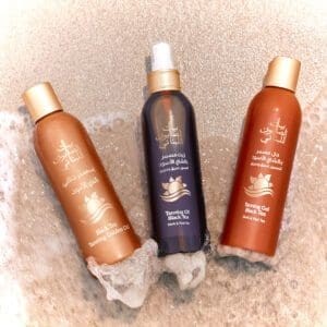 The blend of oils and tannins provides a deep, glowing tan while protecting from dehydration, complemented by the rich, aromatic scent of black tea.
